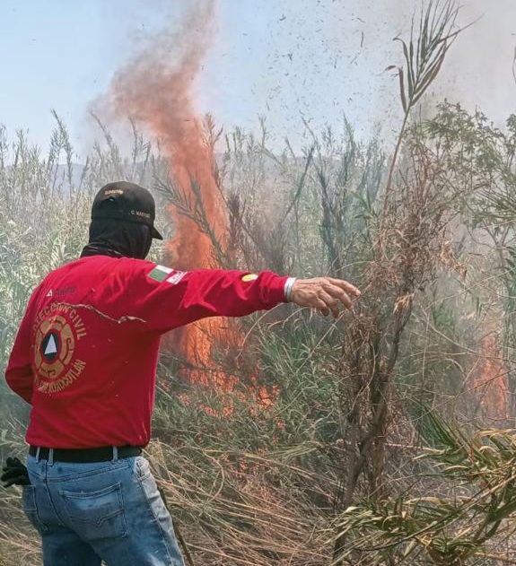 Elementos de la Protección Civil Municipal de Xoxocotlán atendieron de manera inmediata un incendio de pastizales y carrizales en la agencia municipal de San Juan Bautista La Raya.