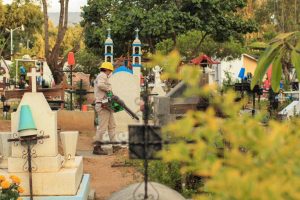 A través de la Dirección de Salud y el área de Vectores de los Servicios de Salud de Oaxaca, se llevaron a cabo nebulizaciones en los panteones San Sebastián Mártir, Mictlancihuatl y Monte Albán, ubicados en la cabecera municipal, espacios con gran afluencia de personas durante los días 31 de octubre, 1 y 2 de noviembre.