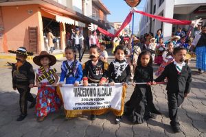 Cada escuela presentó dinámicas llenas de energía y creatividad, que incluyeron bailes, acrobacias, bandas de guerra y la participación de niñas y niños caracterizados como los personajes más emblemáticos de la Revolución.