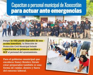 Para la presidenta municipal, Nancy Benítez Zárate, brindar al personal herramientas para actuar oportunamente ante una emergencia, refleja un gobierno sensible que prioriza la vida y actúa cuando más se necesita.