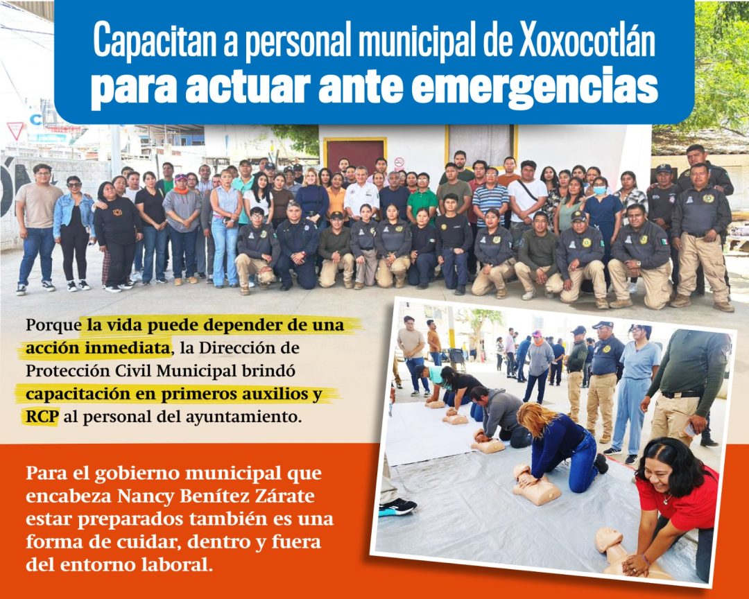 A través de la Dirección de Protección Civil Municipal, se brindan herramientas como la reanimación cardiopulmonar (RCP), que permiten actuar de forma inmediata ante una emergencia, tanto en el entorno laboral como en la vida diaria.
