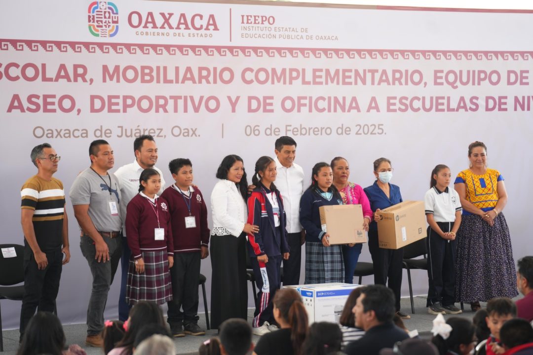 Asimismo, en la escuela primaria “Vicente Guerrero” se entregaron 30 equipos de cómputo, con el objetivo de fortalecer el acceso a herramientas tecnológicas y reducir la brecha digital entre la comunidad escolar.