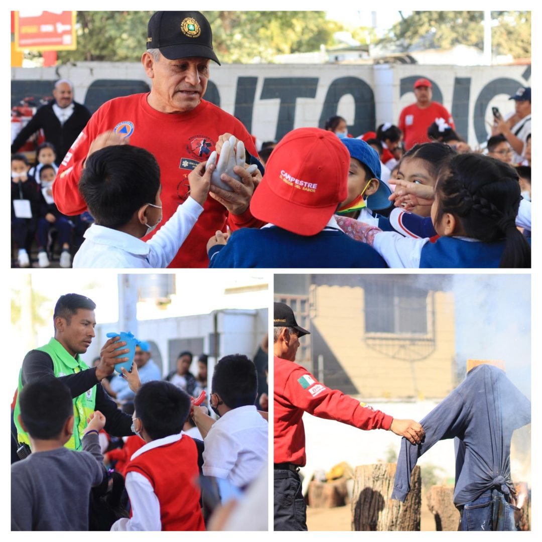 La actividad, coordinada por el director de Protección Civil de Santa Cruz Xoxocotlán, César Narváez Jarquín, tuvo el objetivo de generar conciencia sobre los riesgos reales del uso de pirotecnia y las consecuencias permanentes que puede provocar en la integridad física.