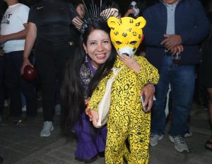 Flanqueados por la presidenta municipal y autoridades locales, los pequeños desfilaron caracterizados de calaveras, monjes, diablitos, catrines y ánimas, figuras que danzan entre la vida y la muerte en una celebración que une lo sagrado con lo festivo.